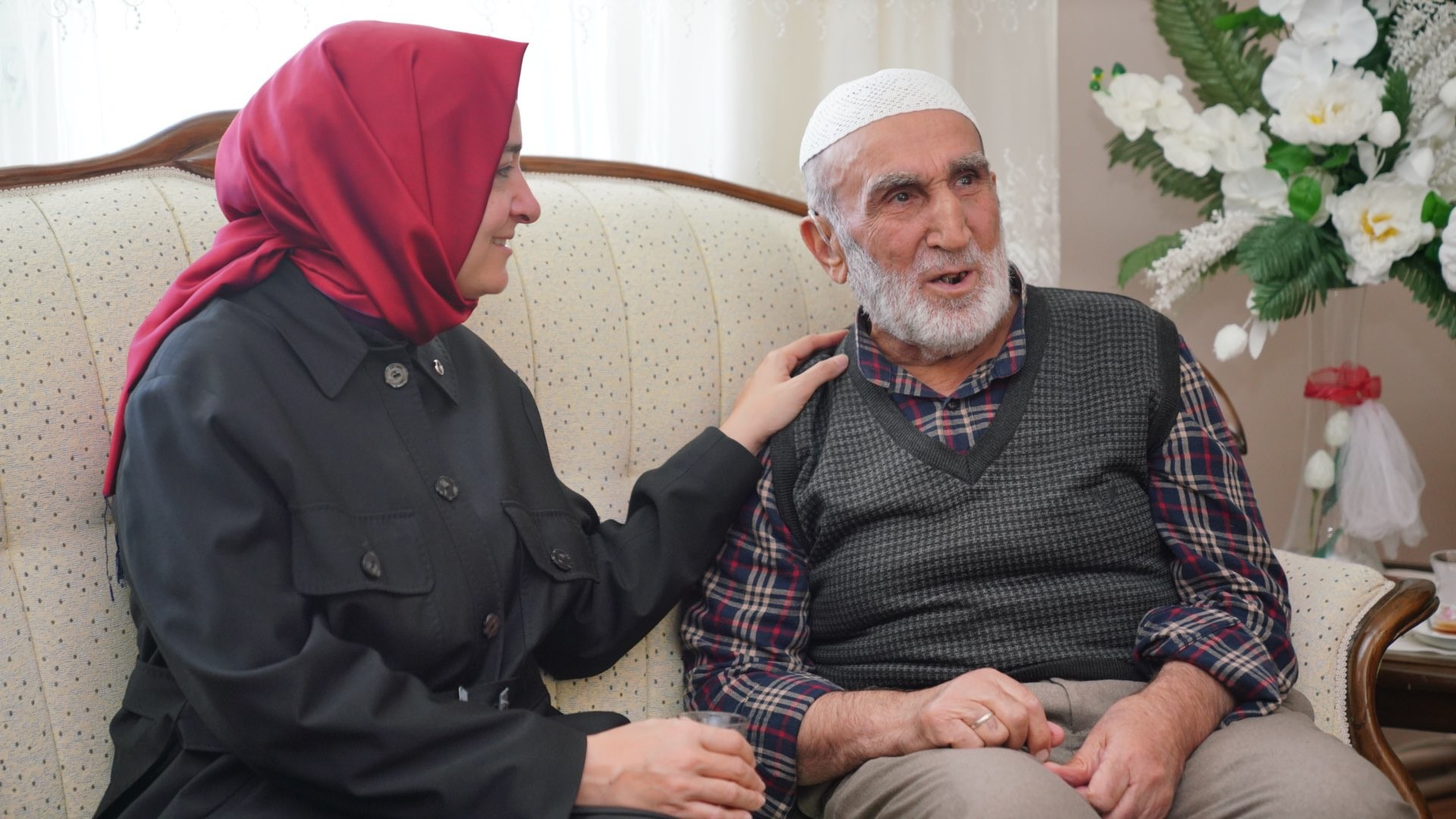 Bediha Hanım ve Sinan Bey’i de ziyaret eden Sayan, Cumhurbaşkanı Recep Tayyip Erdoğan’ın mahalle arkadaşı olan Sinan Bey’in hatıralarını dinledi.