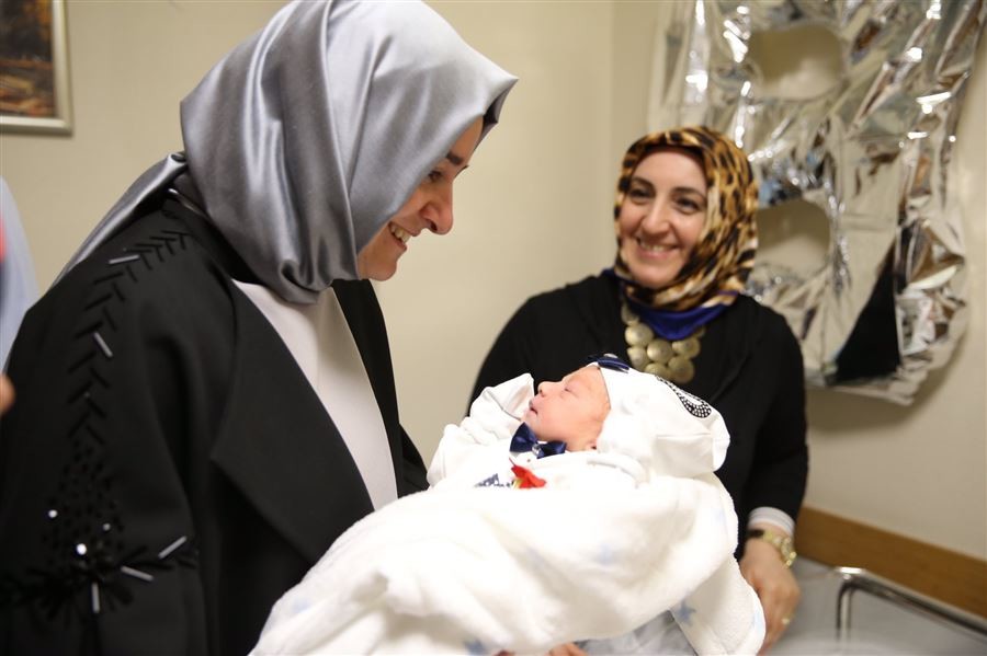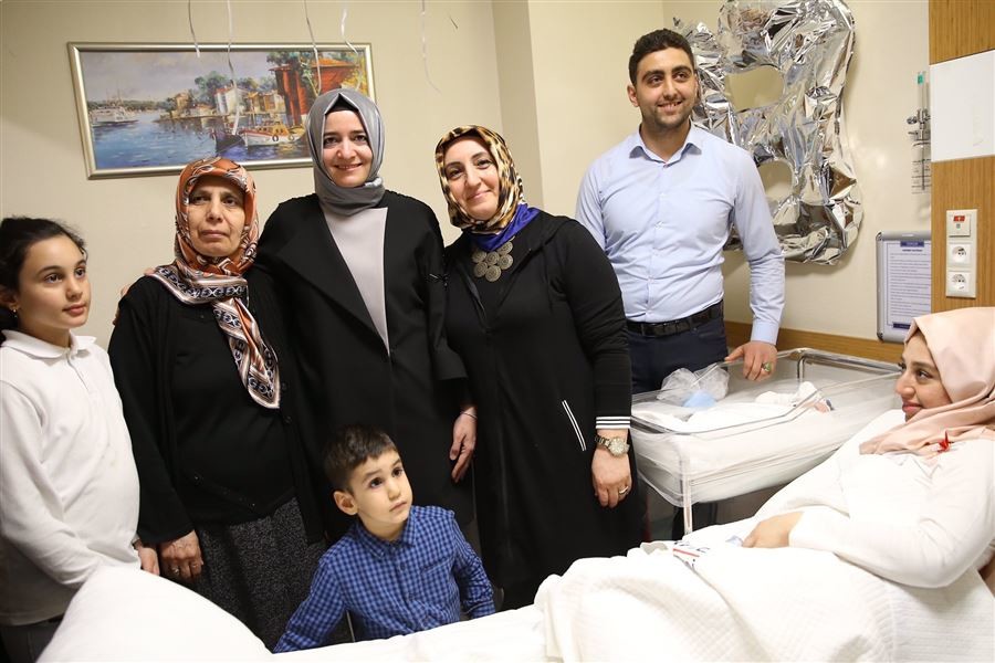 Bakan Kaya, 15 Temmuz gazisi Semih Sağlam'ın doğum yapan eşini hastanede ziyaret etti.