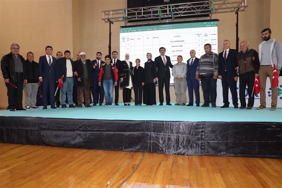 Bakan Kaya ve Ekonomi Bakanı Zeybekci, Denizli’de TOKİ ile Aile ve Sosyal Politikalar Bakanlığı iş birliğinde yaptırılan 786 konutun sahiplerinin belli olduğu kura çekim törenine katıldı.