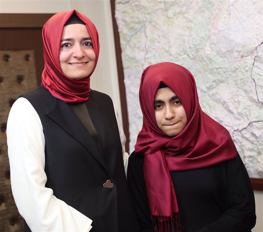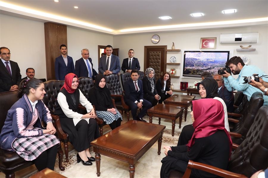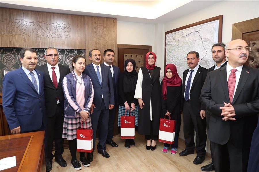 Bingöl'de temaslarda bulunan Bakan Kaya, YGS Türkiye birincisi Ahsen Zeynep Kaya ve TEOG sınavlarında Türkiye birincileri arasına giren öğrencilerle bir araya geldi.